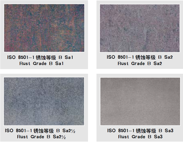 | Sa1 輕度的噴射清理 | 在不放大的情況下觀察時,表面應無可見的油、脂和污物,并且沒有附著不牢的氧化皮、鐵銹、涂層和外來雜質(zhì)。 |