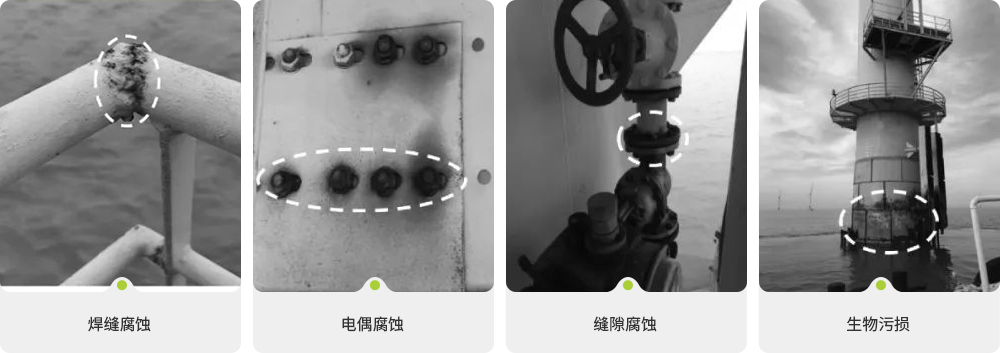 與陸地風(fēng)電相比,海上風(fēng)電所處的高濕度、高鹽霧、長(zhǎng)日照、海水、海泥、漂浮物、浮冰等惡劣的海洋環(huán)境,必然使海上風(fēng)機(jī)面臨嚴(yán)峻的腐蝕考驗(yàn),且維修成本巨大,因此海上風(fēng)電設(shè)計(jì)壽命一般在25年以上,其防腐蝕設(shè)計(jì)壽命也應(yīng)超過(guò)25年,同時(shí)腐蝕控制系統(tǒng)也必須能夠承受各種環(huán)境的考驗(yàn),比如海泥、海水、浪花飛濺、海洋大氣以及持續(xù)的機(jī)械損傷、磨損。