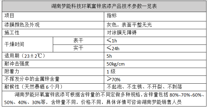 三、環(huán)氧富鋅底漆技術(shù)參數(shù)