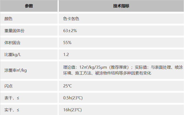 施工特性: 優(yōu)化的流平性使其具有良好施工性能,適用于無氣噴涂、刷涂和輥涂。