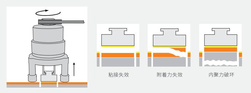 (b)附著力失效,即涂層與基體在拉力下分離,此值為銀粉漆涂層與基體的附著力。