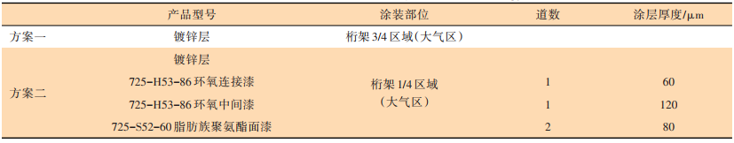 表 3 海上光伏桁架樣板防腐對(duì)比方案