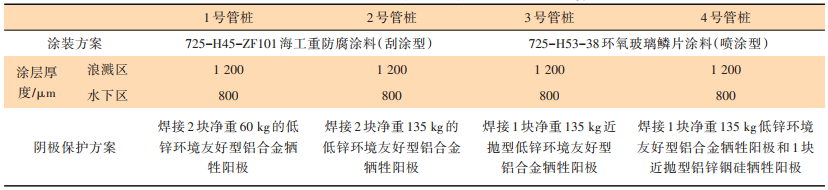 鋼管樁涂裝及陰極保護(hù)方案如表2所示。