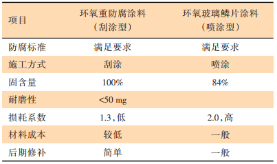 現(xiàn)場(chǎng)實(shí)證試驗(yàn)中,鋼管樁采用了兩種防腐涂層方案,分別是環(huán)氧重防腐涂料(刮涂型)、環(huán)氧玻璃鱗片涂料(噴涂型),兩種方案在施工效果及180 d的現(xiàn)場(chǎng)海洋環(huán)境勘測(cè)中均滿足要求。兩種涂層防腐方案的相關(guān)參數(shù)對(duì)比如表4所示。