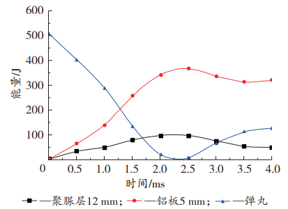 圖2 涂有12 mm聚脲涂層的復(fù)合板的能量吸收能力