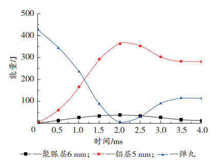 圖3 涂有6 mm聚脲涂層的復(fù)合板的能量吸收能力