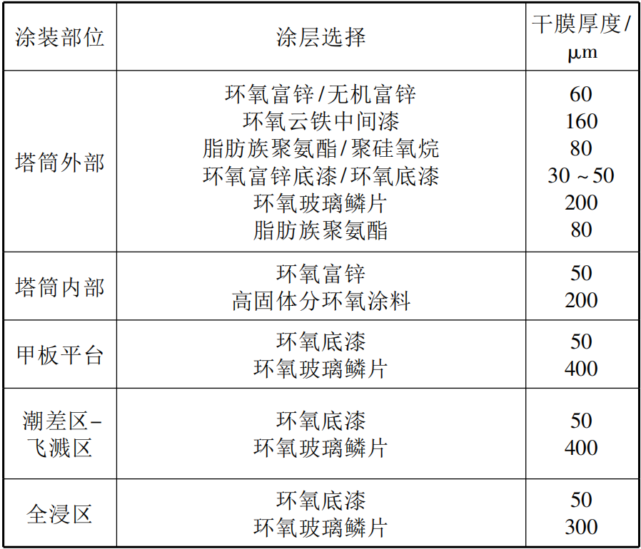 表 1 海上風(fēng)電推薦的防腐涂層體系