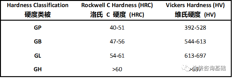 市場(chǎng)上的鋼砂磨料有四種硬度分類,如下所示:
