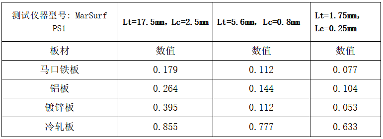 表1.不同Lc下馬口鐵板基材Ra值測試結(jié)果