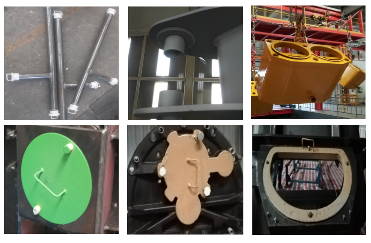 針對性的除去所有松散的氧化皮、銹蝕、涂料等。用橡膠堵、螺栓以及專用屏蔽工裝屏蔽螺紋孔、軸孔、配合面、銘牌。不用紙膠帶等易被鋼丸打掉的材料屏蔽,防止被拋掉后堵塞鋼丸循環(huán)系統(tǒng)。