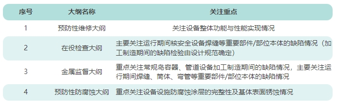 核電站設(shè)備維修、在役檢查管理可依據(jù)核安全法規(guī)、技術(shù)導(dǎo)則及相應(yīng)技術(shù)規(guī)范(如ASME規(guī)范)執(zhí)行,而預(yù)防性防腐蝕管理并無相關(guān)的標(biāo)準(zhǔn)或?qū)t可遵循,早期防腐蝕管理主要參考常規(guī)電力、化工行業(yè)標(biāo)準(zhǔn)以及美國(guó)電力研究院(EPRI)、國(guó)際原子能機(jī)構(gòu)(IAEA)提出的技術(shù)導(dǎo)則開展各項(xiàng)防腐蝕管理活動(dòng)。