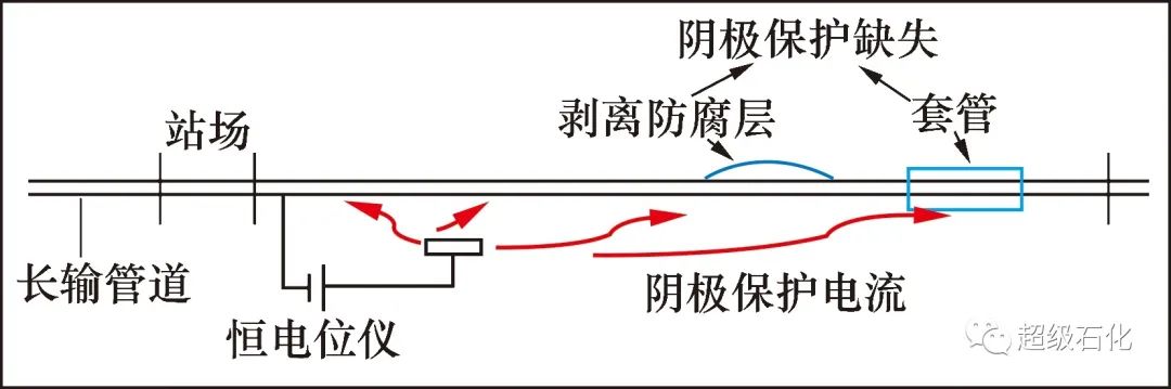 圖1 長(zhǎng)輸管道的陰極保護(hù)及陰極屏蔽