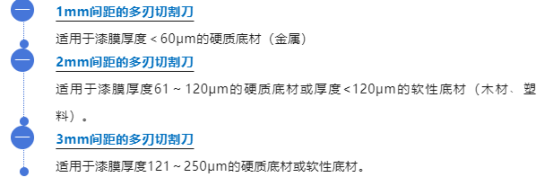 根據(jù)涂層的厚度選用不同刀鋸的劃格器: