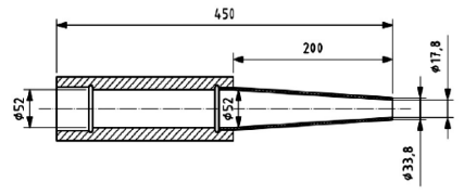 根據(jù)ISO 22899—1:2008的要求,錐形聚合噴嘴的長(zhǎng)度應(yīng)為(200±1)mm,入口直徑為(52±0.5)mm,出口直徑為(17.8±0.2)mm,噴嘴應(yīng)由耐熱不銹鋼制成。制作完成后的試驗(yàn)裝置能根據(jù)需要噴射0~0.4 kg/s的丙烷氣體。