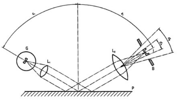 光澤度儀器的原理,是用一個(gè)光源和一個(gè)接收器,來測量材料表面的反射光通量的大小。如果儀器調(diào)校以后,環(huán)境溫度有變化,導(dǎo)致光源的發(fā)光效率變化,那么光源發(fā)光效率變化的誤差就會(huì)直接體現(xiàn)在測量數(shù)據(jù)中。如果有溫度補(bǔ)償功能,那么溫度變化引起的發(fā)光效率變化,能夠得到補(bǔ)償,保證光源的發(fā)光效率不變。光澤度計(jì)的測量原理如圖《測量原理》所示。儀器的測量頭由發(fā)射器和接受器組成,發(fā)射器由白熾光源和一組透鏡組成,它產(chǎn)生一定要求的入射光束。接受器由透鏡和光敏元件組成,用于接受從樣品表面反射回來的錐體光束。鏡像光澤度是對鏡像光澤的相對測量。參照標(biāo)準(zhǔn)是以折射率np=1.567的黑玻璃,假設(shè)其平面在得到理想拋光的狀態(tài)下,由該平面對自然光束進(jìn)行鏡向反射,并定義此時(shí)的光澤度值為100.0光澤單位。光澤度板按光澤度值又分為高、中、低三種。高光澤度板由黑色光學(xué)玻璃或他材料制成。中光澤度板和低光澤度板由涂釉陶瓷或黑色光學(xué)玻璃磨砂制成。光澤度計(jì)利用光反射原理對樣品的光澤度進(jìn)行測量。即:在規(guī)定入射角和規(guī)定光束的條件下照射樣品,得到鏡向反射角方向的反射光。