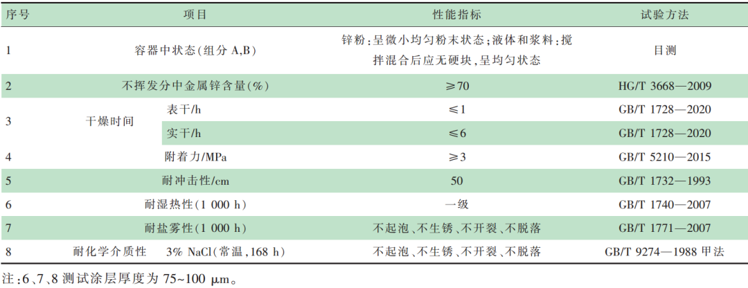 表1 水性無(wú)機(jī)富鋅涂料性能