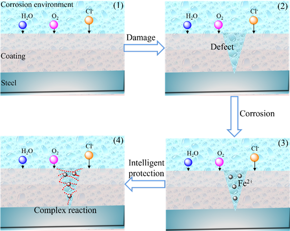 金屬表面完美的涂層可以有效抵抗腐蝕介質(zhì)(如O2、Cl-和H2O)的侵蝕,能對金屬基體形成有效保護。當涂層受到破壞時,在涂層表面產(chǎn)生的缺陷將利于腐蝕介質(zhì)滲透到涂層中,繼而加速金屬腐蝕。