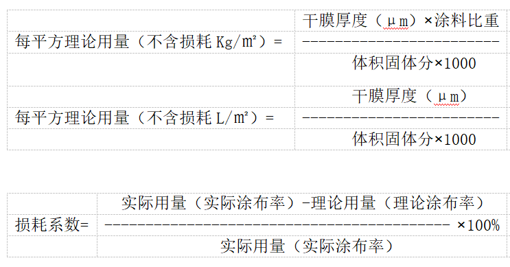 1.防腐蝕涂裝施工前進行預(yù)算,精準(zhǔn)確定涂料的使用量,做到基本不斷料,不余料。涂料理論涂布率計算公式為: